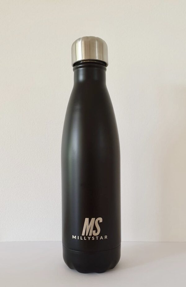 Stay refreshed on the go with the Millystar Black Insulated Water Bottle. Designed for durability and performance, this 500ml bottle keeps your drinks cool for up to 24 hours and warm for up to 12 hours.